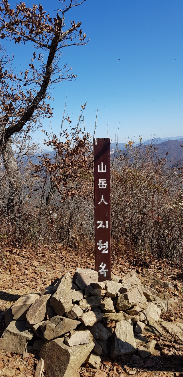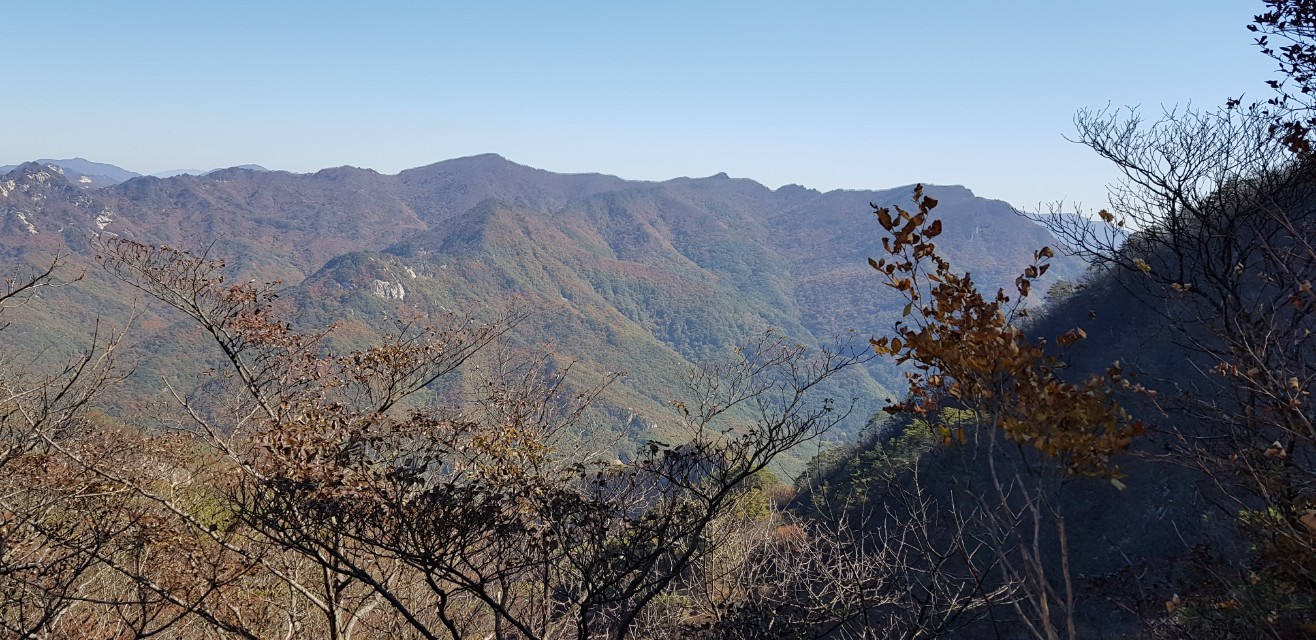 1일 2산에서 주흘산을 포기하니, 시간 여유가 생긴다. 정상까지는 더욱 편안하게 진입한다. 조망도 있고, 단풍도 눈에 들어온다. 거대한 정상석 앞에서 인증 사진을 한 장 찍고, 신선암봉 방향으로 하산을 진행한다. 함께 출발한 안내 버스 일행들은 이미 눈에 보이지 않을 정도로 앞서간다. 신선암봉이 아닌 마당바위 방향으로 향하면서 계곡을 따라 본격 하산을 시작한다.