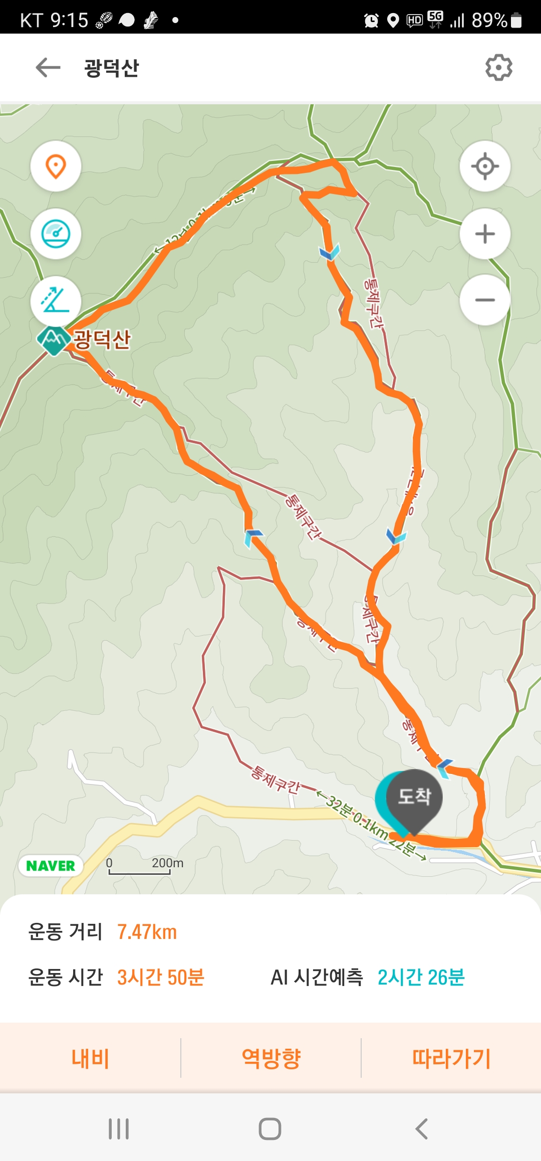 산행코스(7.28km, 산행시간 3시간 51분)
