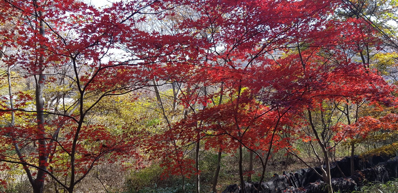 장군바위 방향으로 하산을 시작한다. 천천히 단풍을 음미할 생각으로 식사도 건너뛴다. 광덕산은 전형적인 육산으로 하산길이 너무나 감미롭고 낭만적이다. 사진 찍느라 산행속도가 더디게 된다. 광덕산의 가을 모습은 기대 이상으로 멋지게 각인된다. 짧지만, 황홀한 산행이 끝이 난다. 아쉬운 시간이다. 들머리에서 파전에 비빔밥을 흡입하고, 광덕산에서의 아쉬움을 가득 안은 단풍산행을 마무리한다.