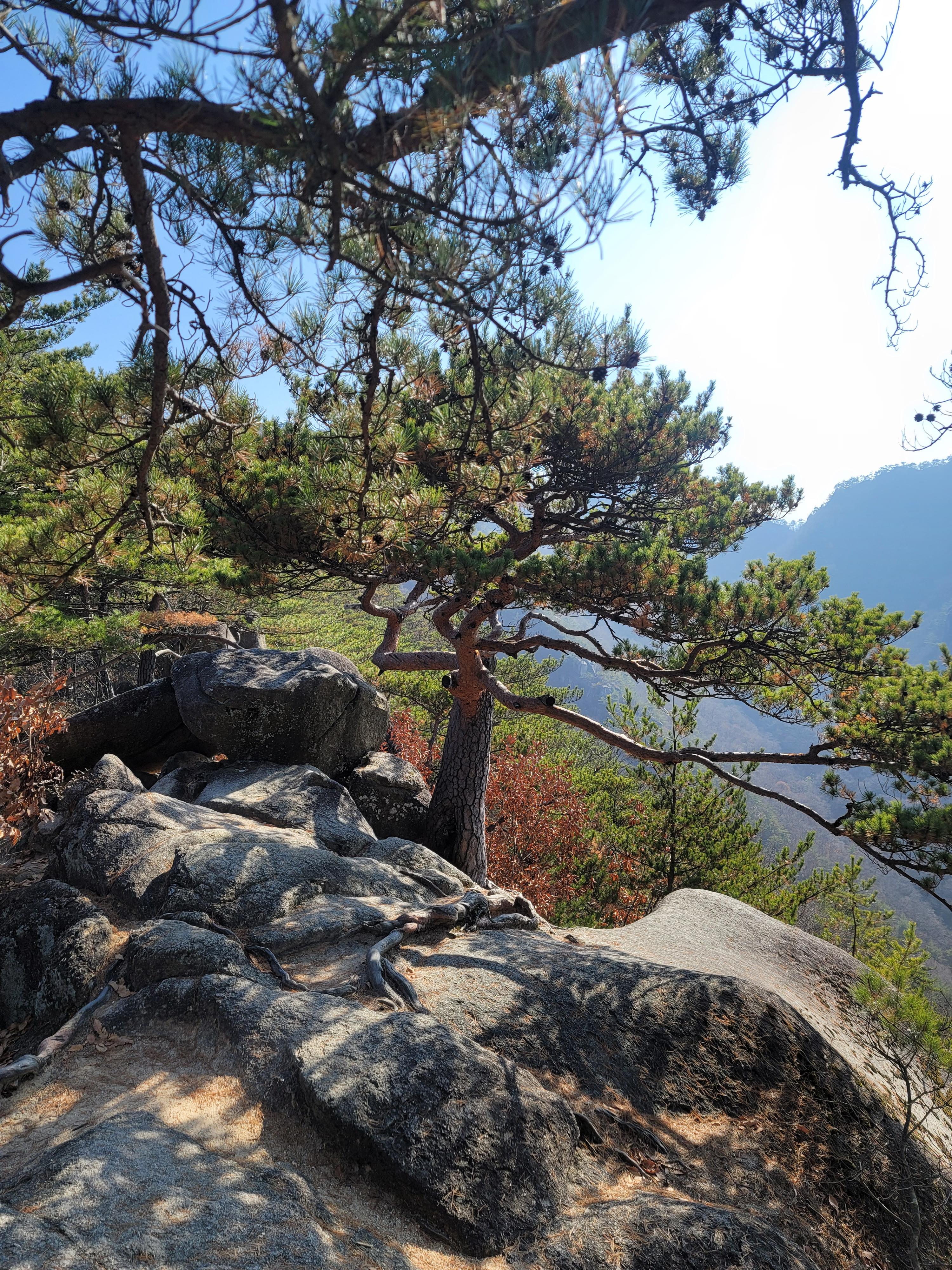 어김없이 세 번째 찾게 된 도락산이다. 똑같은 코스로 산행하게 되니, 코스가 눈에 선하다. 주차장에서 준비를 마치고, 도로를 따라 오른다. 좌측 편 선암가든 주차장 방향으로 등산로가 시작된다. 입구에서 잠깐 단풍의 모습을 감상하고, 오르막을 오른다. 조망이 군데군데 열리는 지점에서 마을과 산그리메를 감상한다. 바위에 홀로 꿋꿋이 지키고 있는 명품 소나무의 모습이 감동을 준다.
