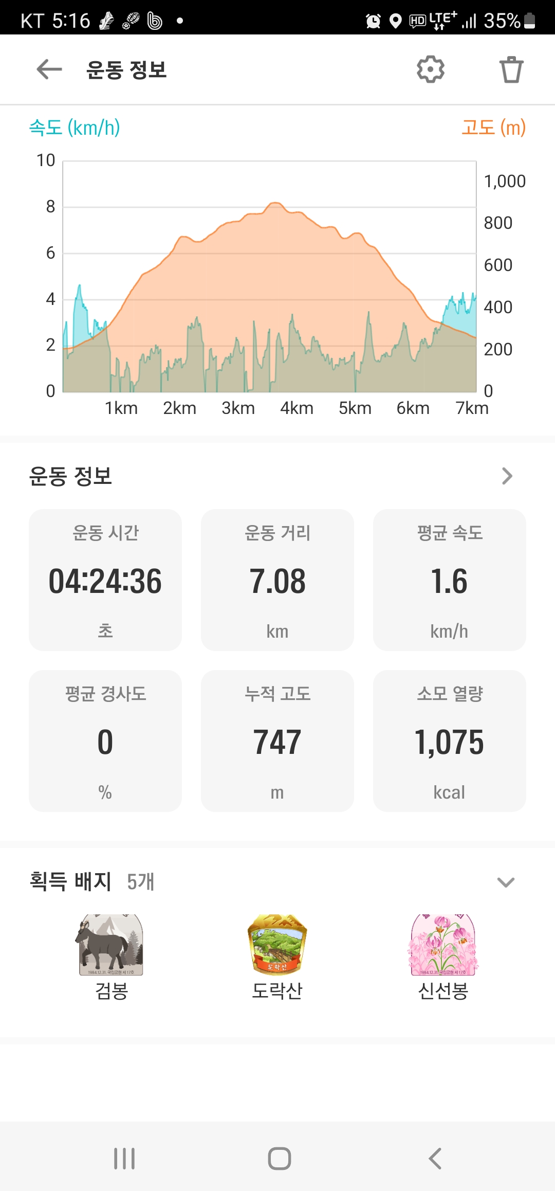 산행코스(7.08km, 산행시간 4시간 24분)