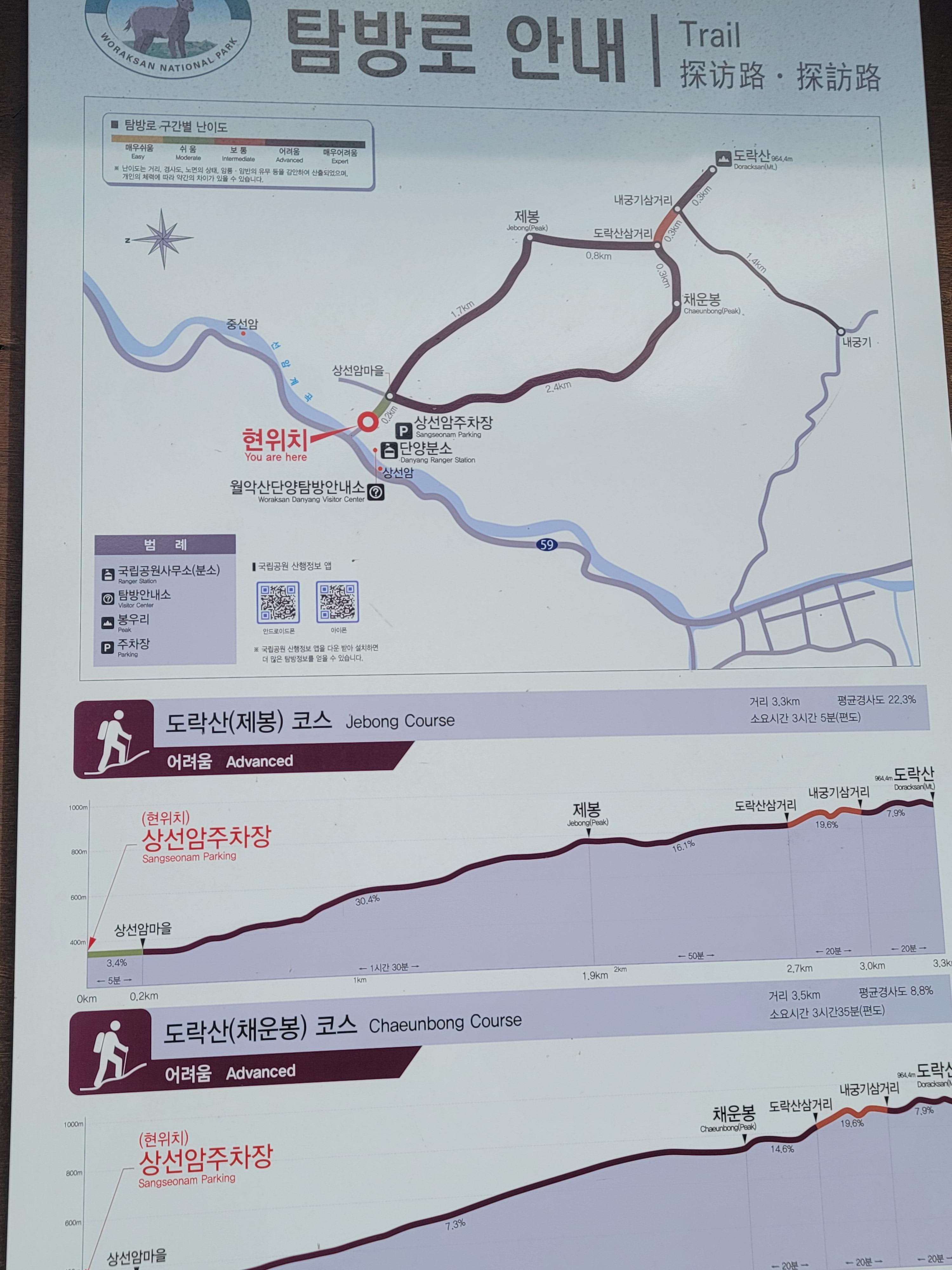 : 상선암 주차장-선암가든-제봉-형봉-도락산 삼거리-신선봉-정상-신선봉-도락산 삼거리-채운봉-상선암 주차장
