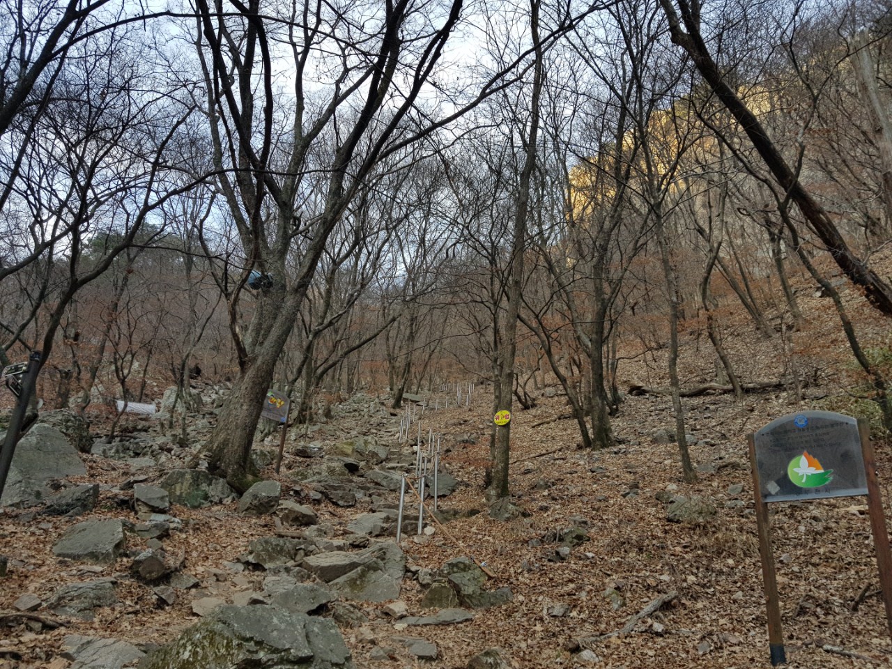자차를 이용해 소요산 주차장에 도착한다. 아침 일찍 출발하니, 아침 8시경에 이미 주차장이다. 의외로 다소 쌀쌀한 날씨다. 간단히 준비를 하고 바로 산행을 시작한다. 일주문을 지나 108 계단 앞에서 우측 편으로 오른다. 구절터 및 샘터를 지나 정상인 의상대로 바로 오르는 코스를 택한다. 매번 자재암 쪽으로 해서 시계방향으로 한 바퀴 산행을 했기에 이번에는 방향을 바꿔본다. 이 코스에도 계속되는 오르막이지만, 그나마 나무계단이 없어 산행이 수월하다.