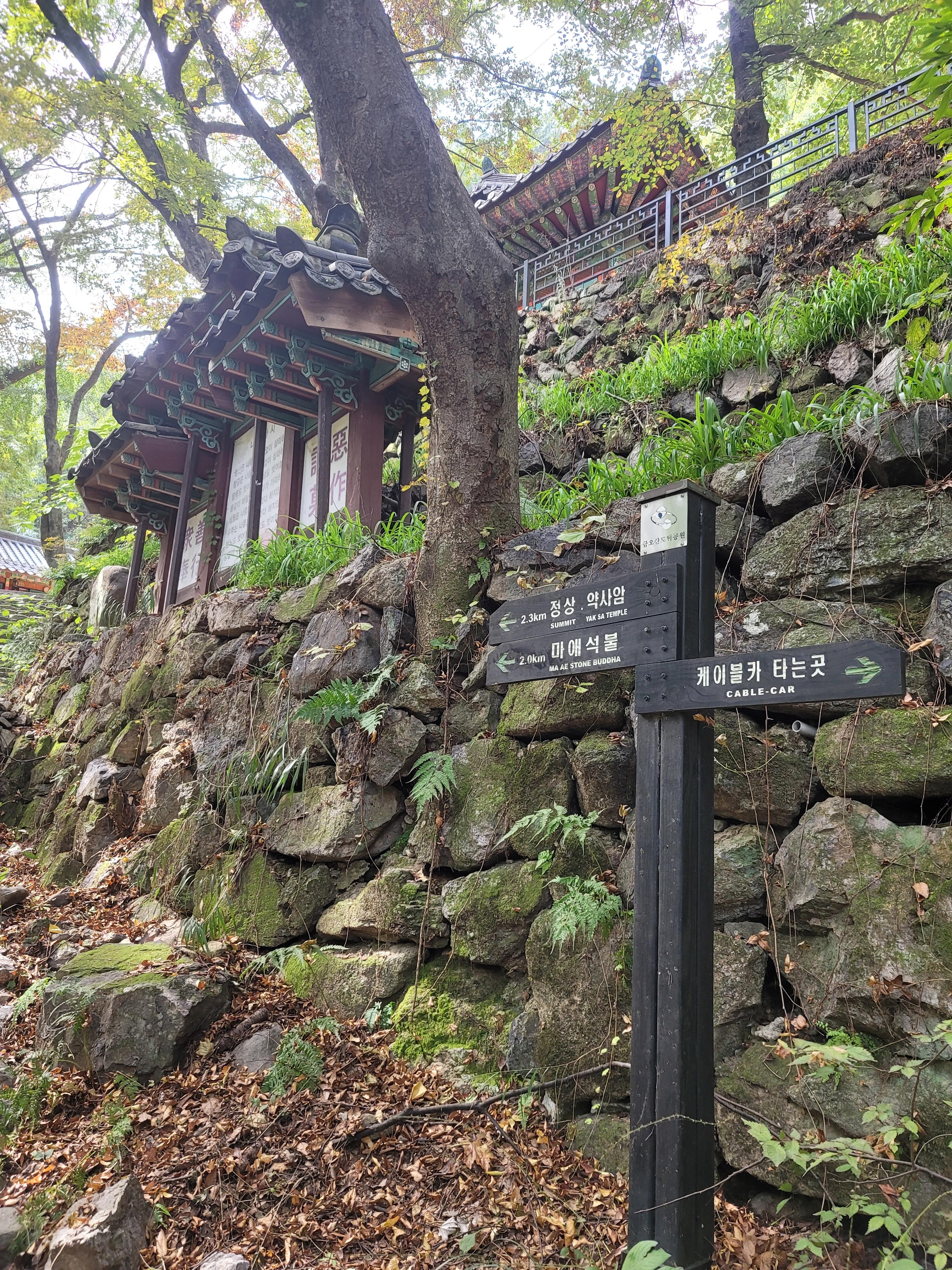 : 금오산 제 1주차장-케이블카 매표소-영흥정-대혜폭포-할딱고개-오형돌탑-마래여래입상-약사암-정상(현월봉)-성안-계곡길-대혜폭포-도선굴-케이블카 매표소-금오산 제1주차장