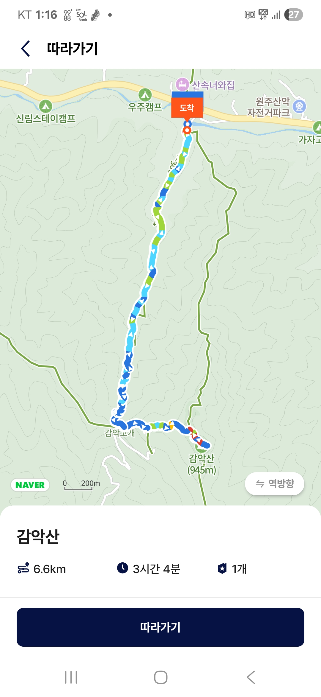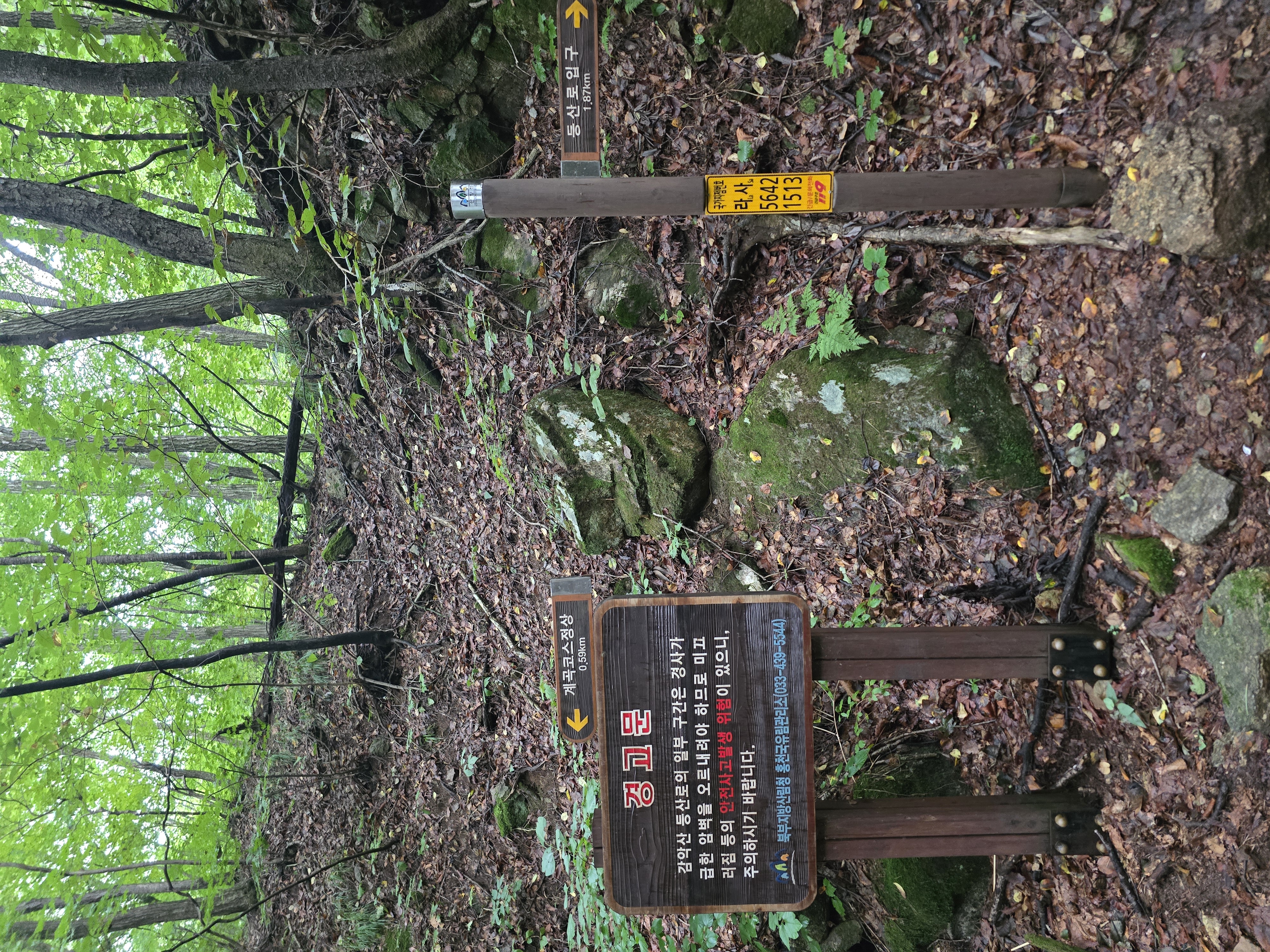 : 감악산 쉼터 주차장-(계곡코스)-감악고개-계곡(능선)코스 갈림길-정상(제천)-갈림길-감악고개-감악산 쉼터 주차장