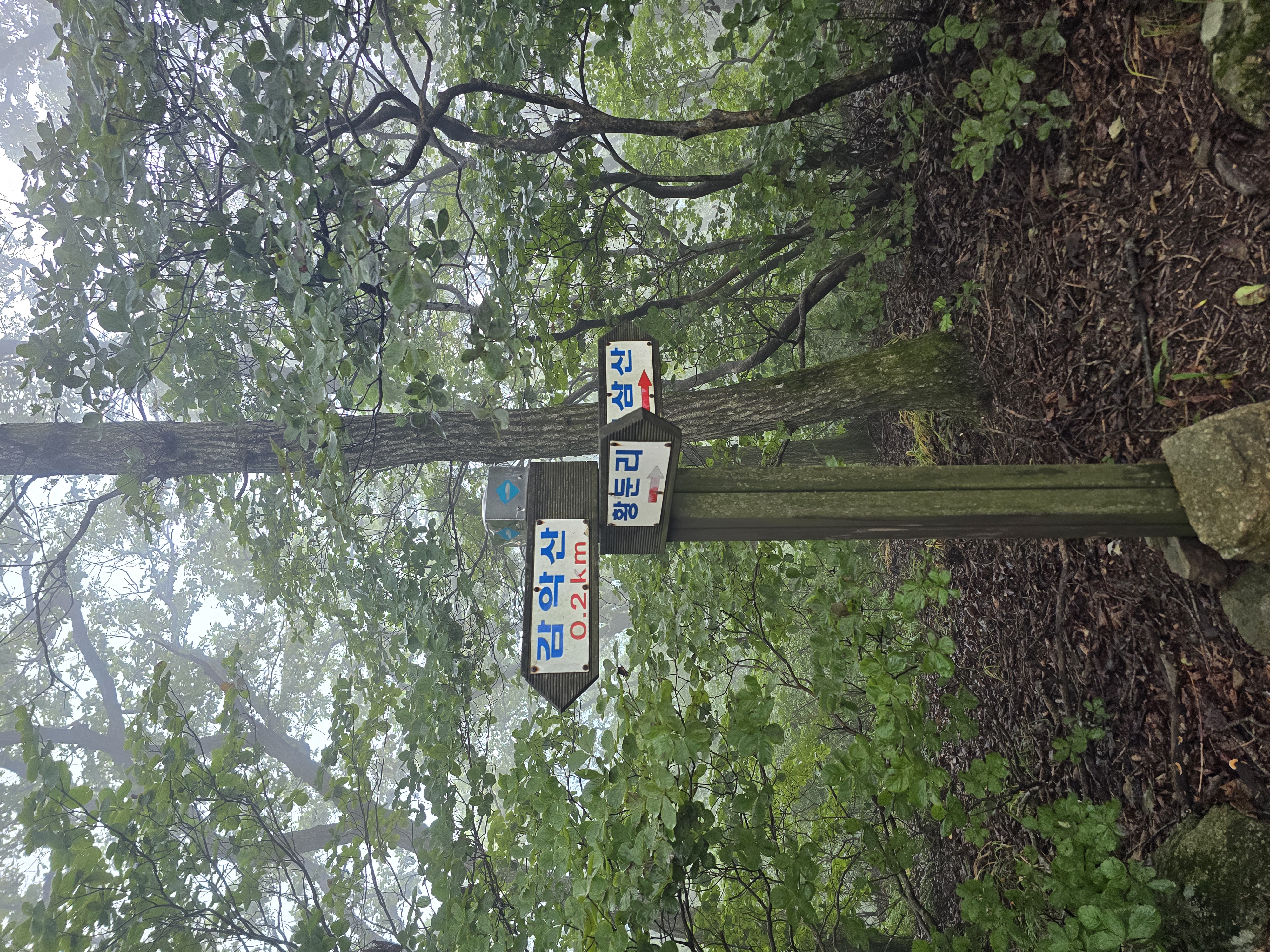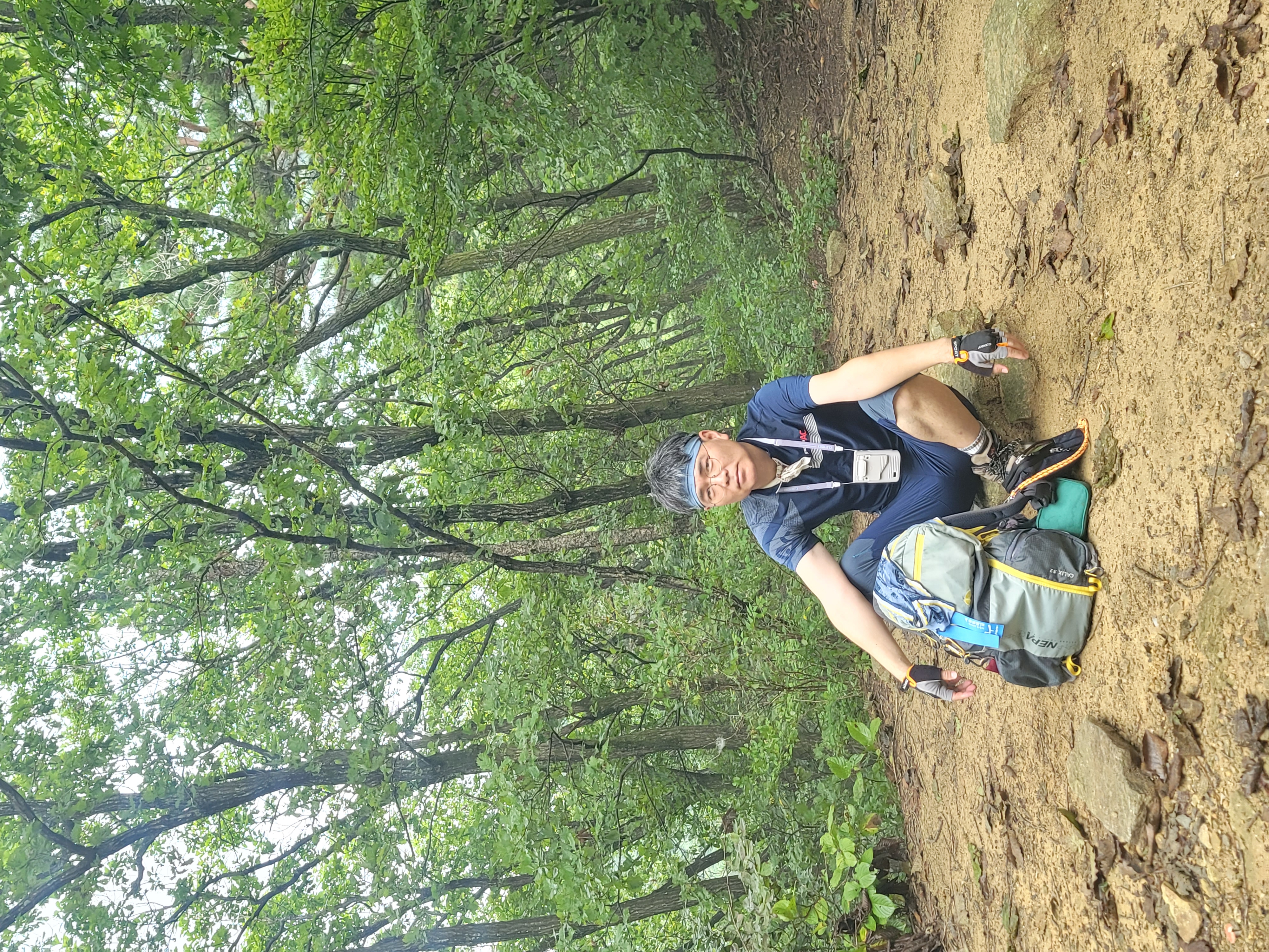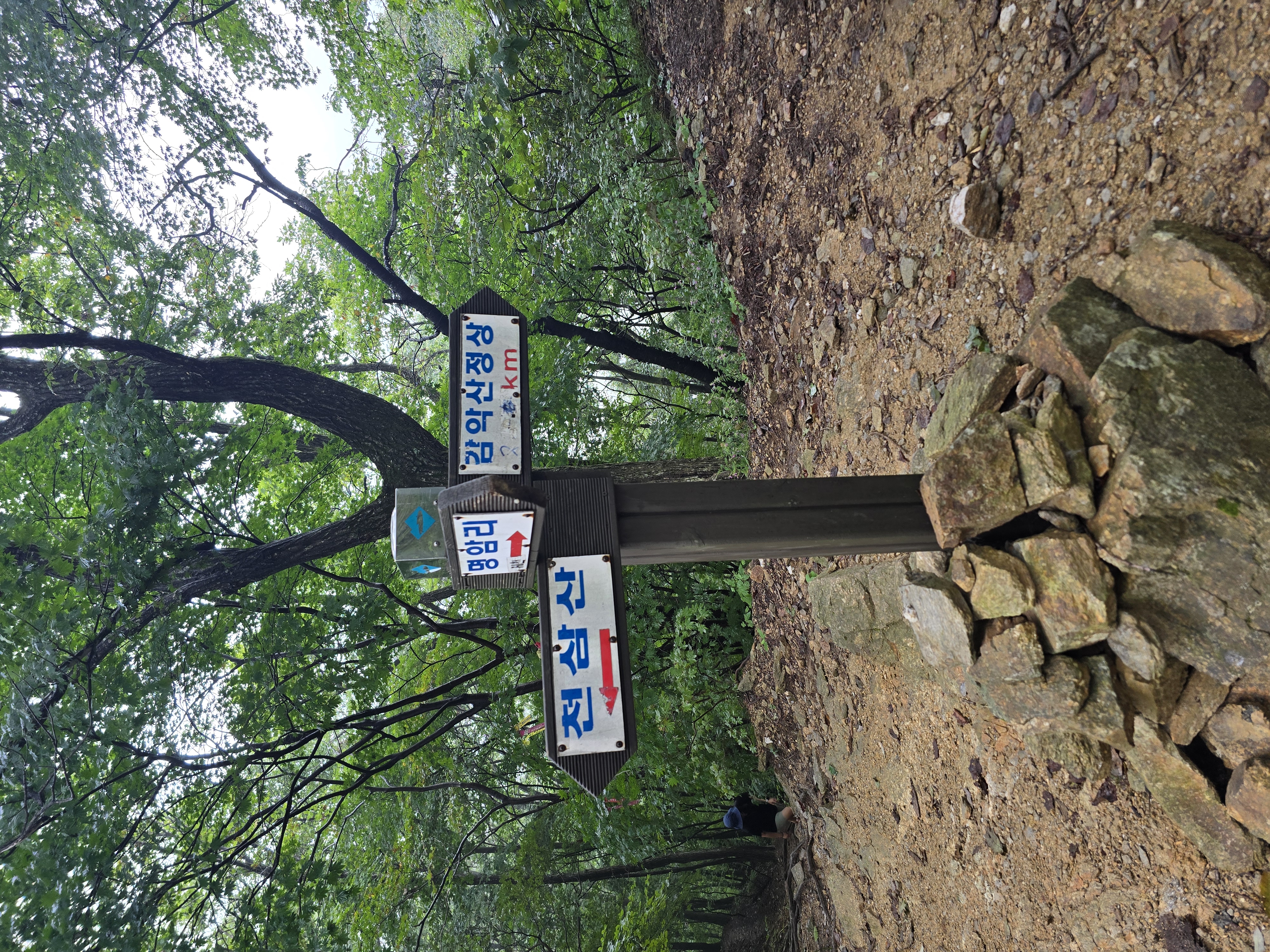 감악산에 올 때마다 올랐던 능선코스는 폐쇄된 상태라 계곡코스로 오른다. 산행 시작할 때는 바람이 간간히 불어 속도를 내보는데. 기대가 컸는지, 역시나 계곡에는 바람이 없고 습도만 높다. 아직 기온이 최고로 오르지 않은 시간임에도 땀이 끊이지 않는다. 크게 어려움 없는 완만한 오르막임에도 한 발 한 발 걸음을 옮기는 데도 힘이 든다. 얼음물을 수시로 마시고, 손 선풍기를 돌려가며 힘들게 힘들게 감악고개에 이른다. 다행히 감악고개엔 바람이 시원하게 불고 있다. 버스를 타고 온 일행들은 모두 감악고개에서 휴식을 취하며, 수분을 보충한다.