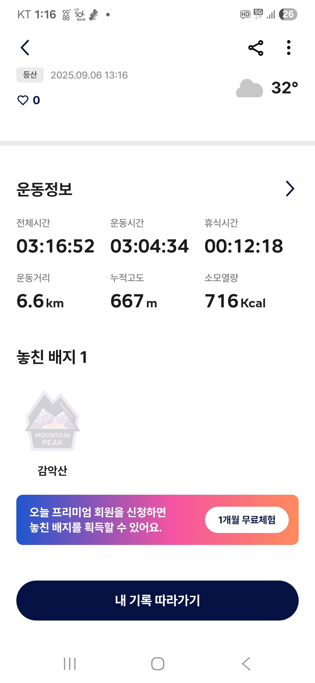 산행코스(6.6km, 산행시간 3시간 4분, 소모열량 716kcal)