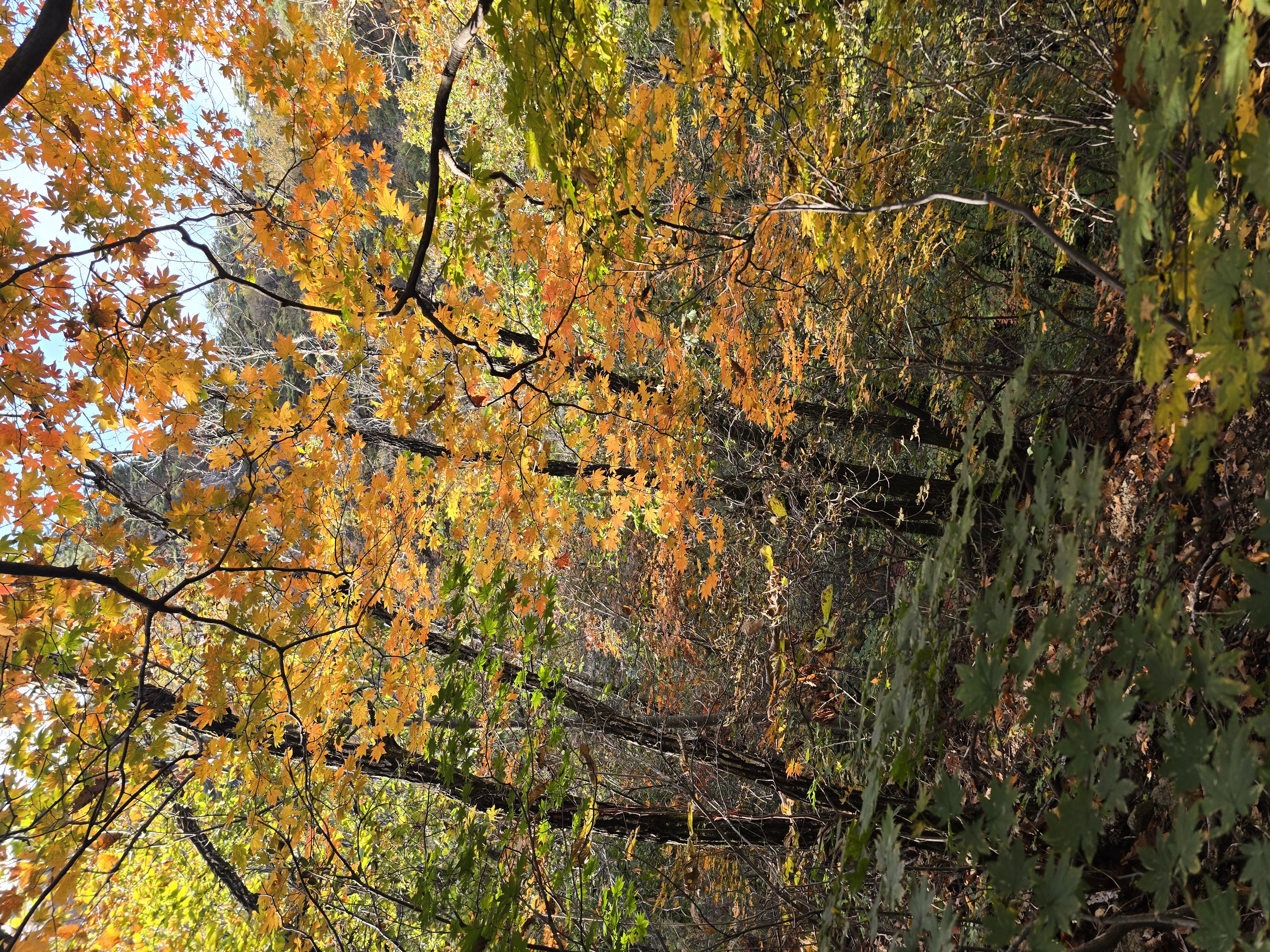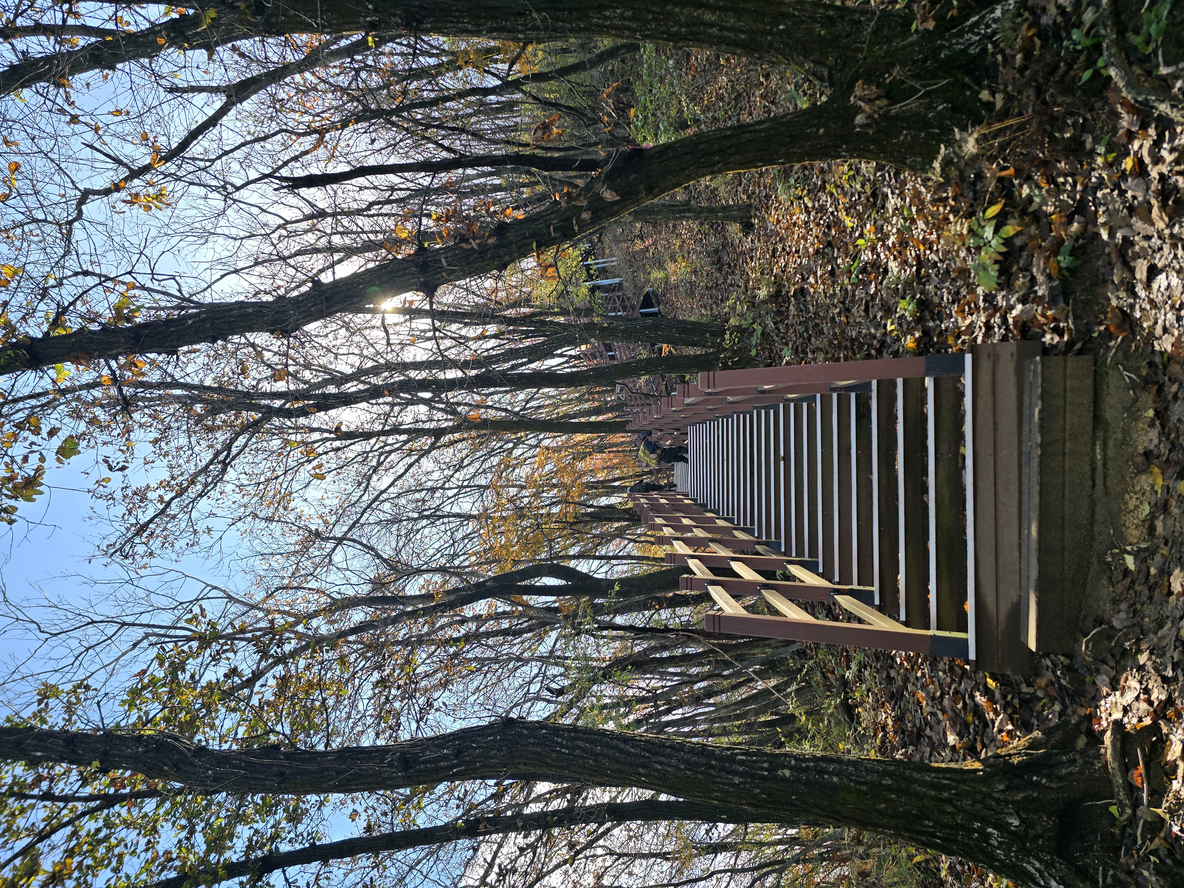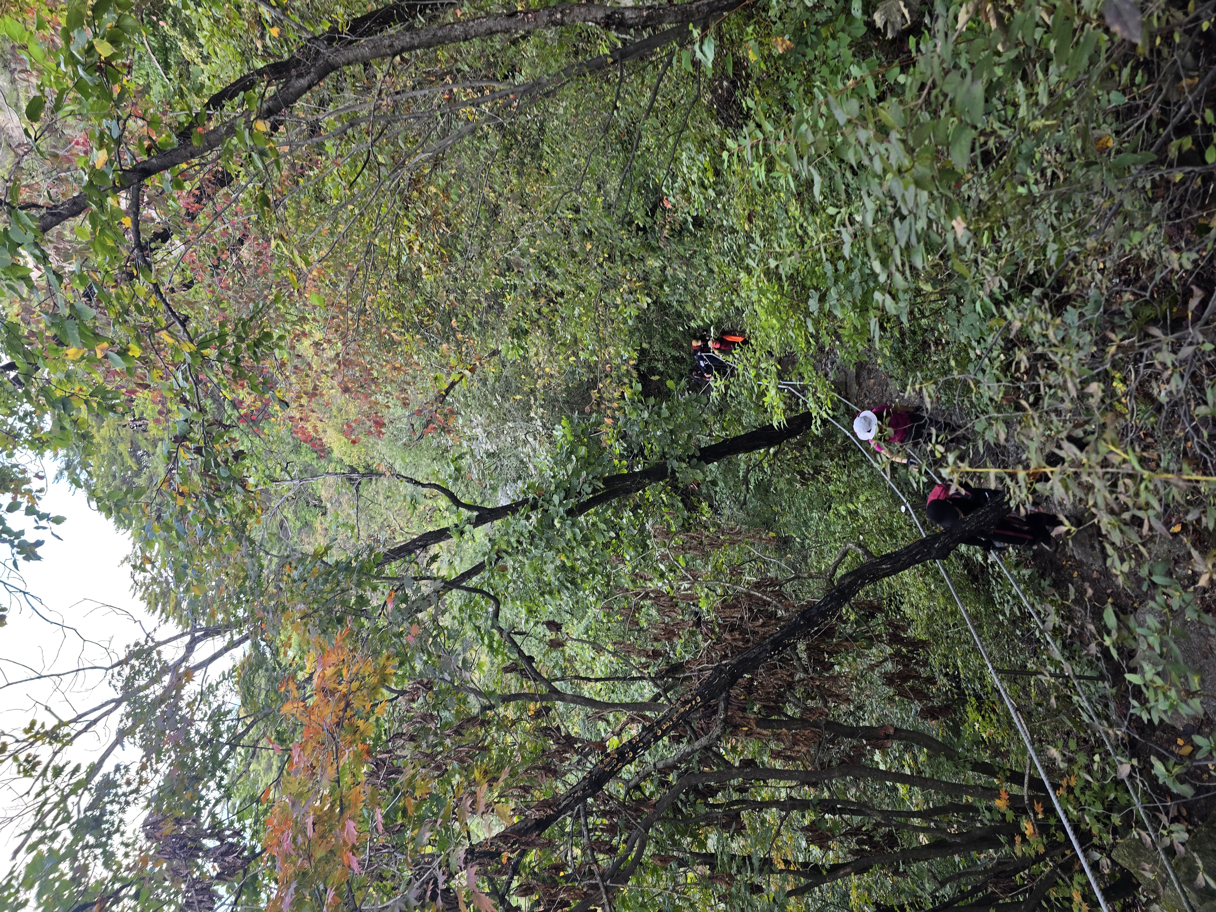 산악회 버스를 타고 운악산 휴게소에 도착하니, 주차장이 벌써 만차라 정신이 없다. 운악산 단풍축제 날(10월 19일)이라고 운악광장에는 무대를 설치하느라 한창 바쁘게들 움직인다. 휴양림으로 들어가는 입구에 운악산 단풍축제를 홍보하기 위해, 손수건과 생수 1통, 그리고 떡을 나눠주고 있다. 1 등산로 앞에서 간단하게 몸을 풀고 나서 계단을 통해 1 등산로 방향으로 산행을 시작한다. 산행하기 딱 좋은 날씨라 걷는데 힘이 난다. 무지치 폭포 전망대에서 울창한 숲에 가려 폭포가 제대로 보이지 않아 아쉽기만 하다.
