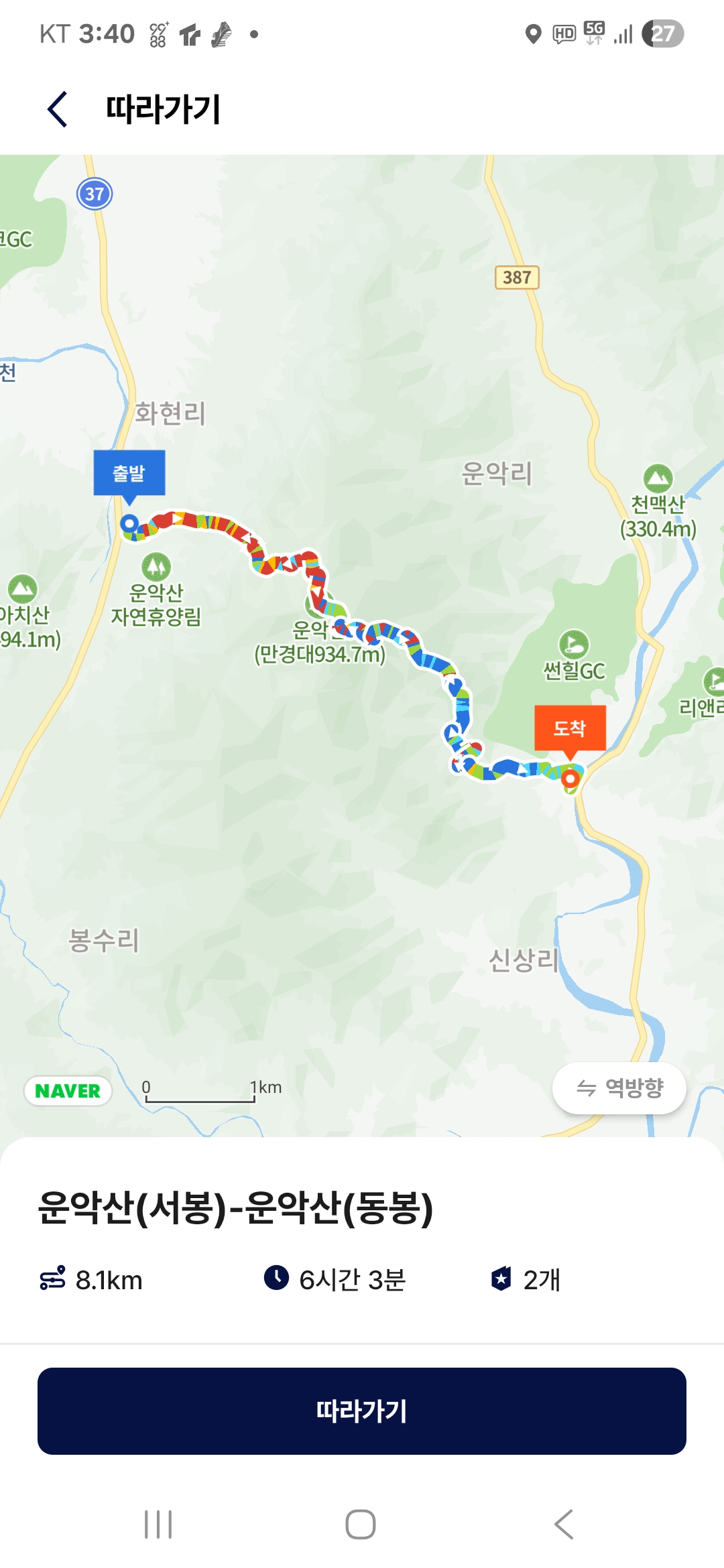 산행코스( 8.1km, 산행시간 6시간 3분, 소모열량 1,151kcal)