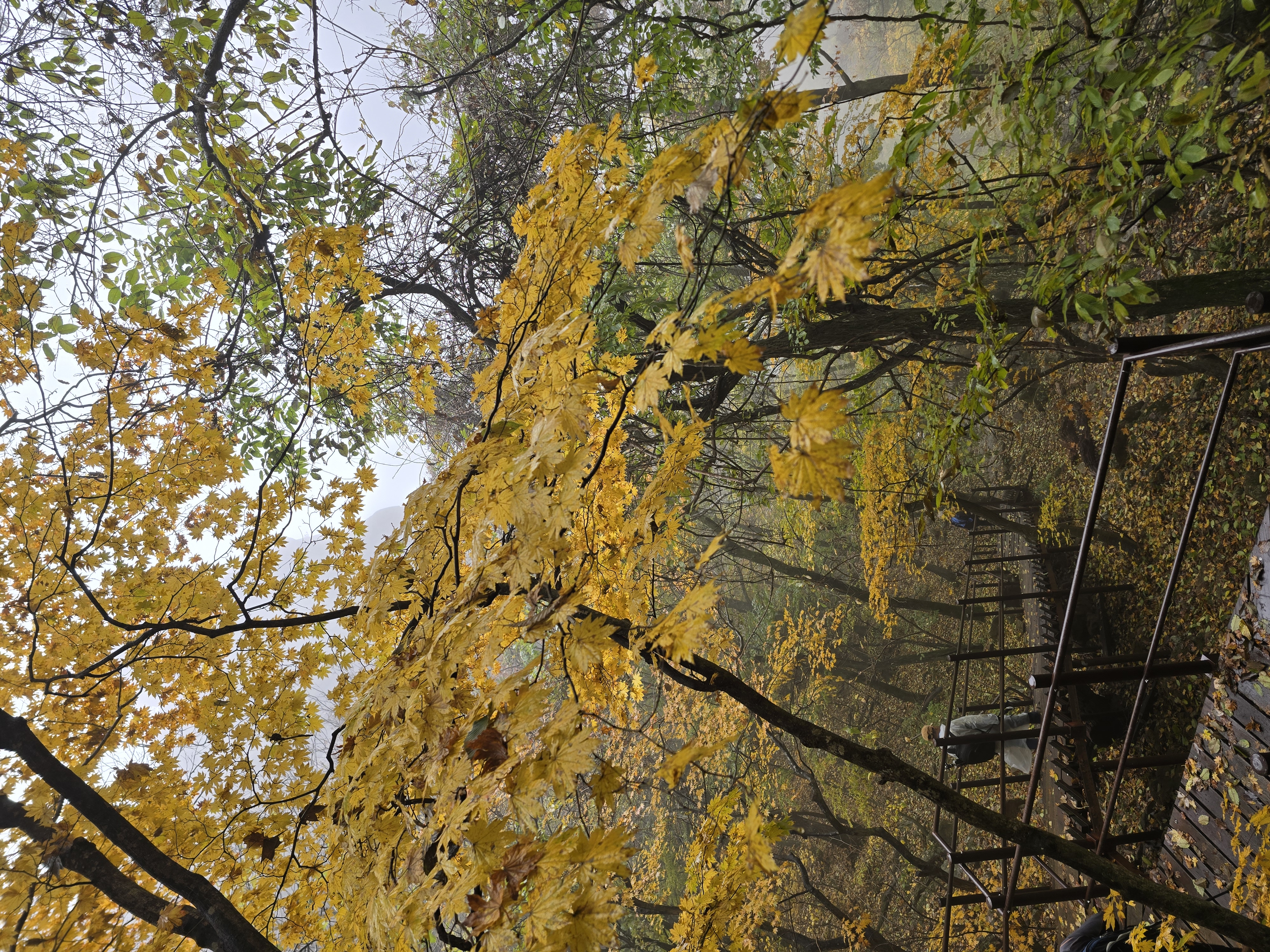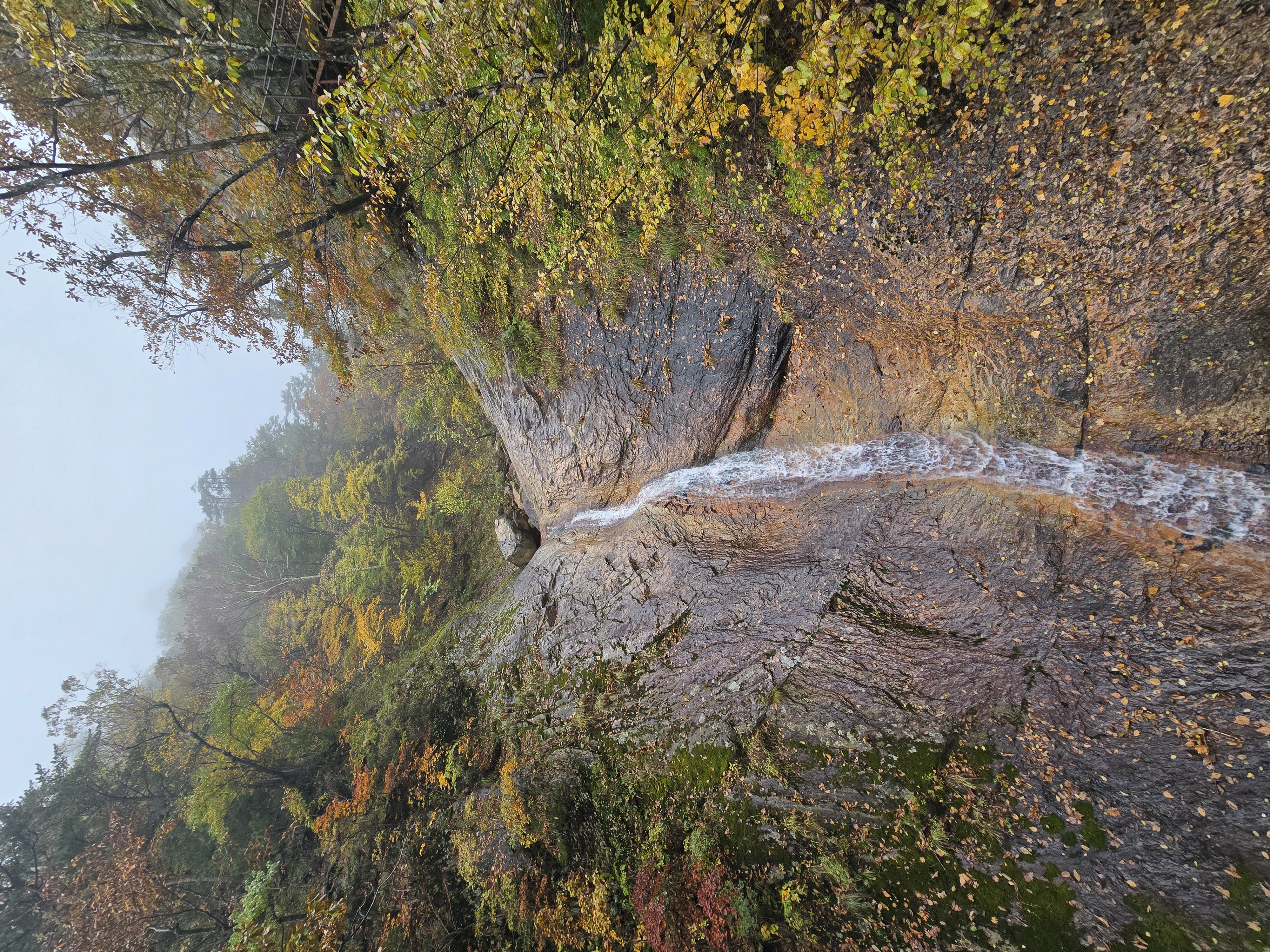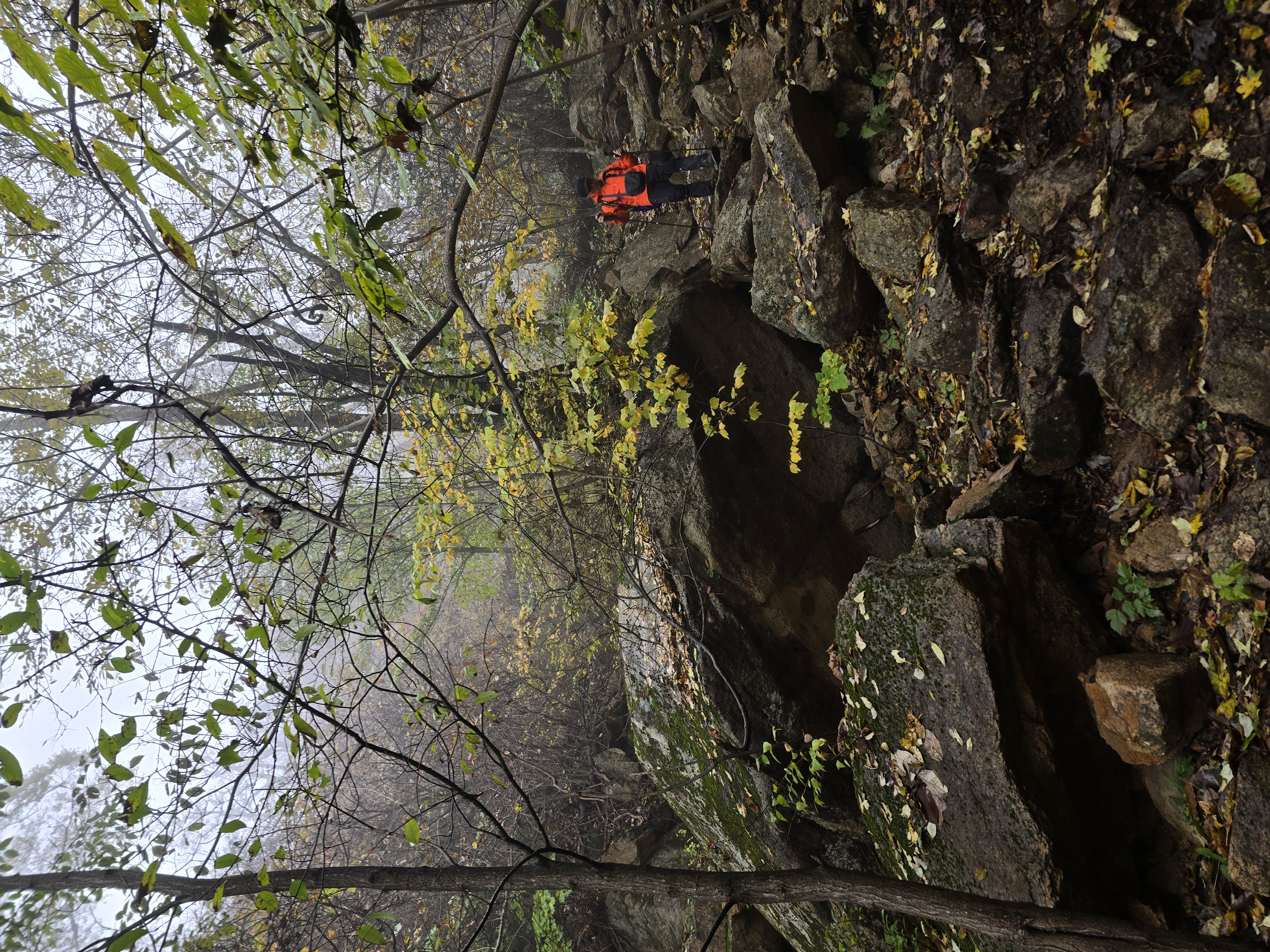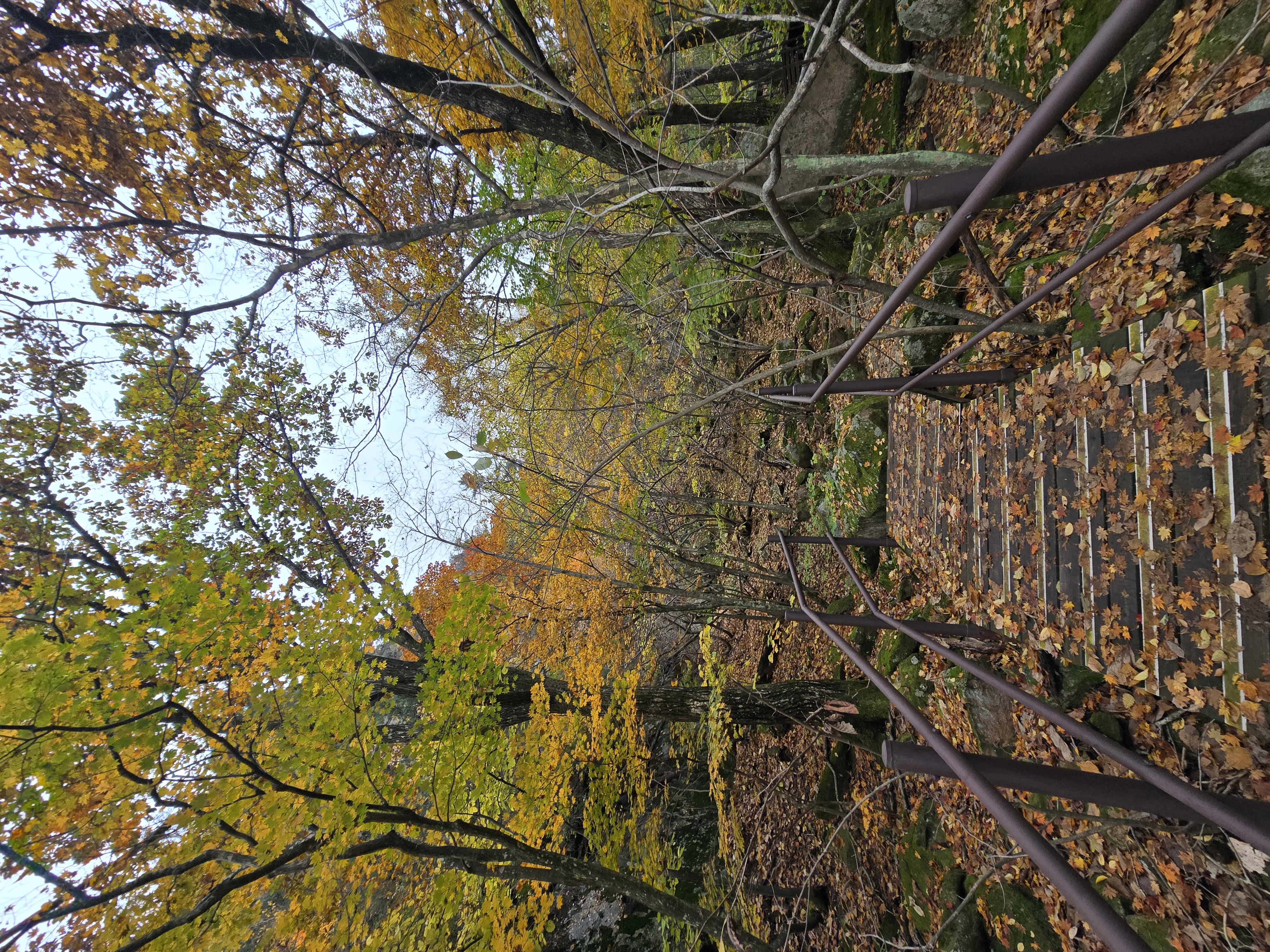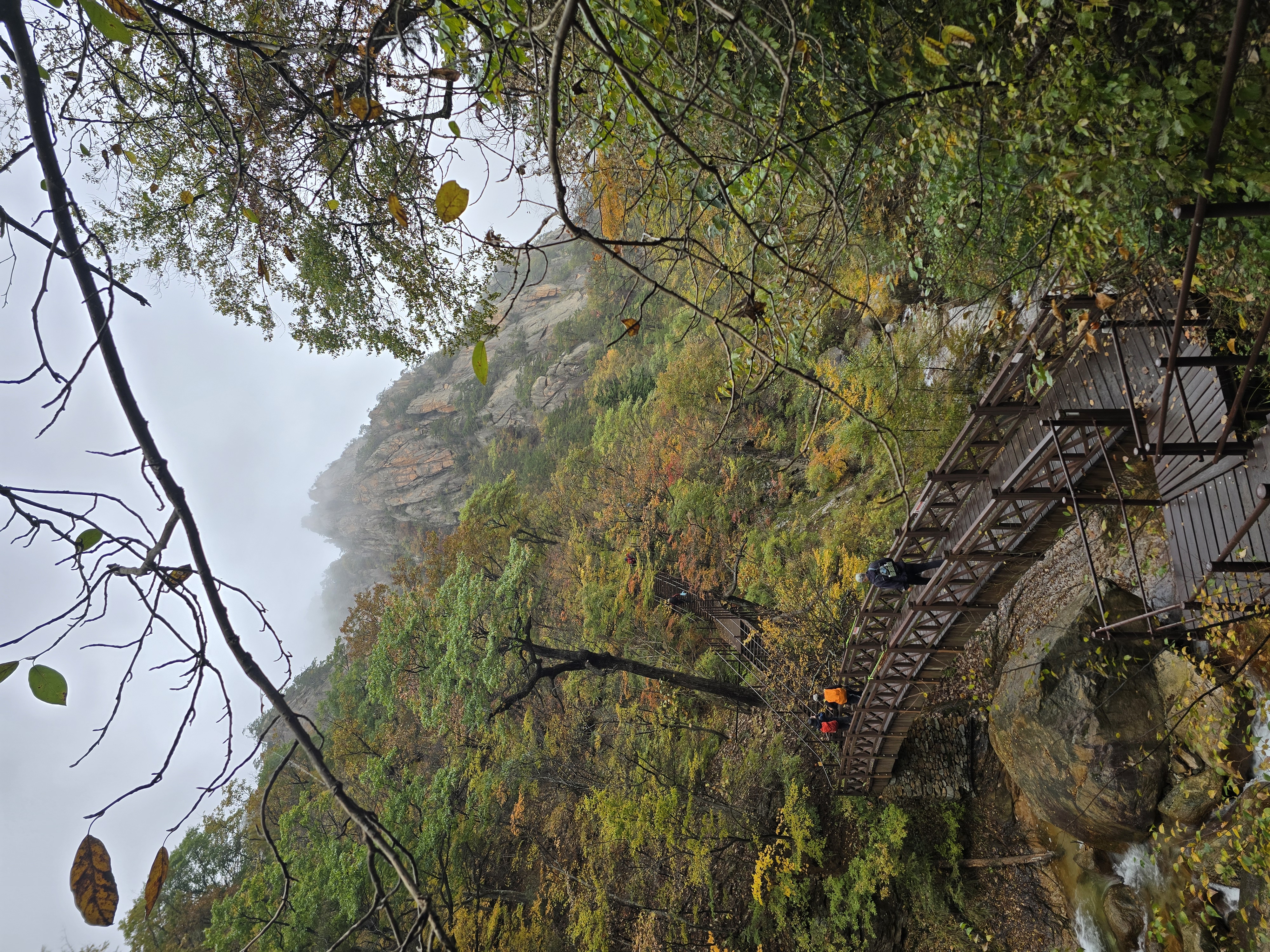등선대에 올랐을 때 더해지던 흩날리던 안개비의 강도가 하산길에선 다소 잦아든다. 계단을 조심조심 내려가며 바라보는 조망은 가을의 낭만이 물씬 느껴진다. 등선폭포를 여유 있게 즐기고, 계속해서 주전골 계곡의 낭만을 만끽한다. 계단을 내려가고 운치 있는 다리를 건너며 발 디딜 때마다 낭만이 더해진다. 흩뿌리던 안개비도 이제는 더는 발길을 방해하지 않는다. 1년 전의 단풍과 거의 비슷한 모습이고, 다소 이른 느낌이지만, 그래도 눈 돌릴 때마다 감동의 순간을 제공한다. 한 마디로 힐링의 시간이다.