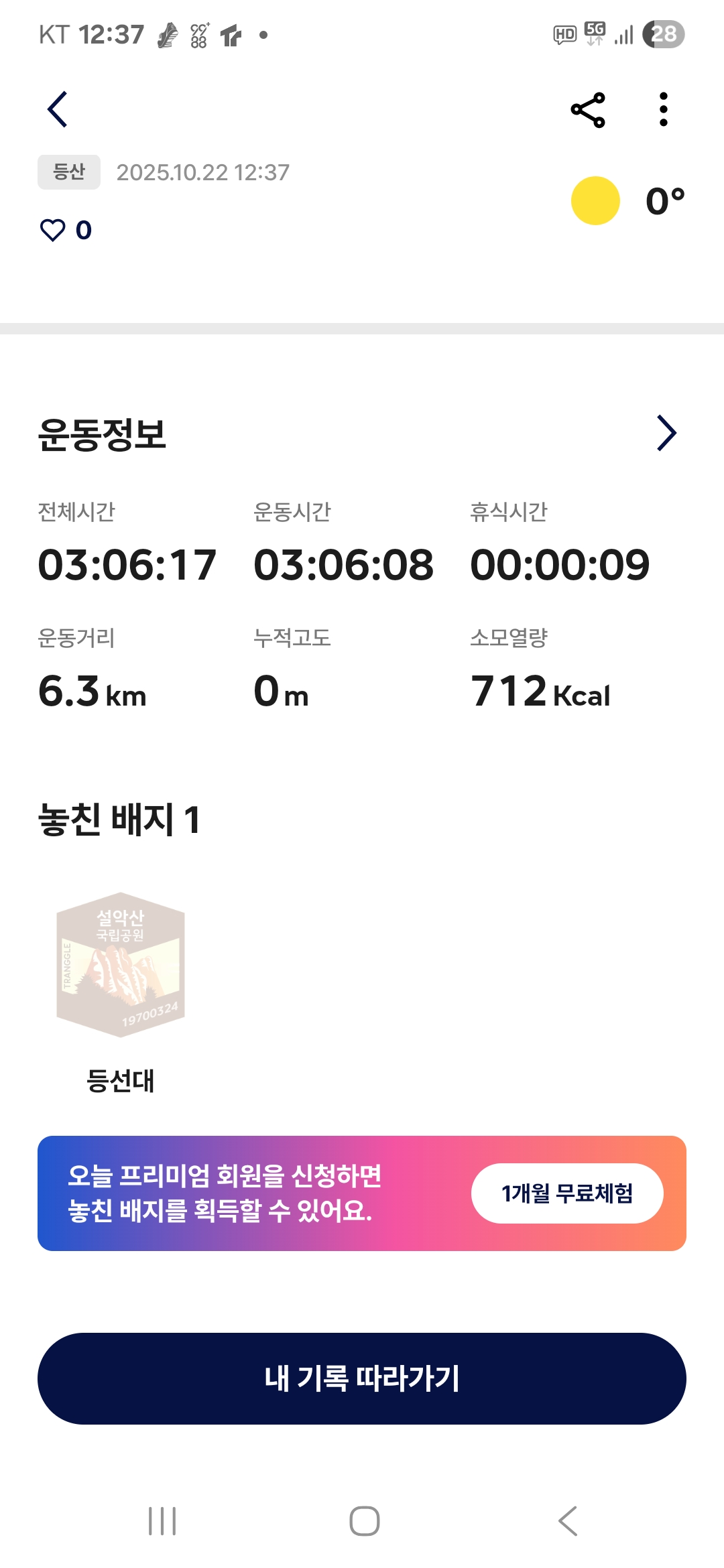 산행코스(6.3km, 산행시간 3시간 5분, 소모열량 712kcal)