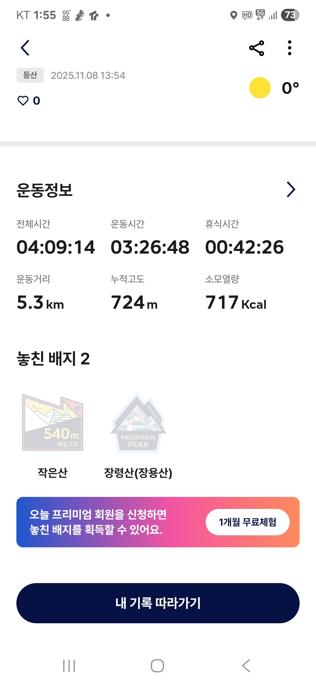 산행코스(5.3km, 산행시간 3시간 26분, 소모열량 717kcal)