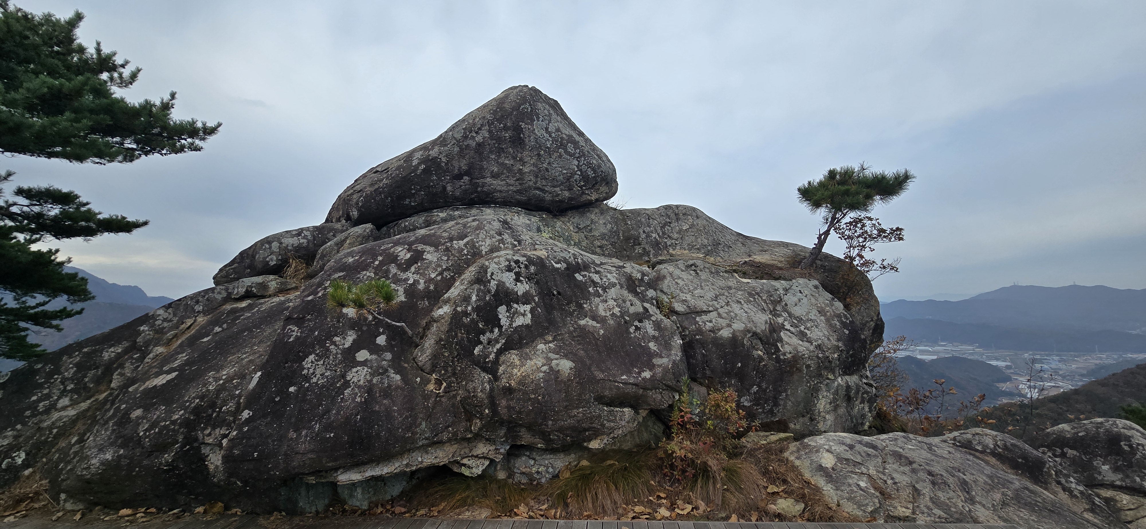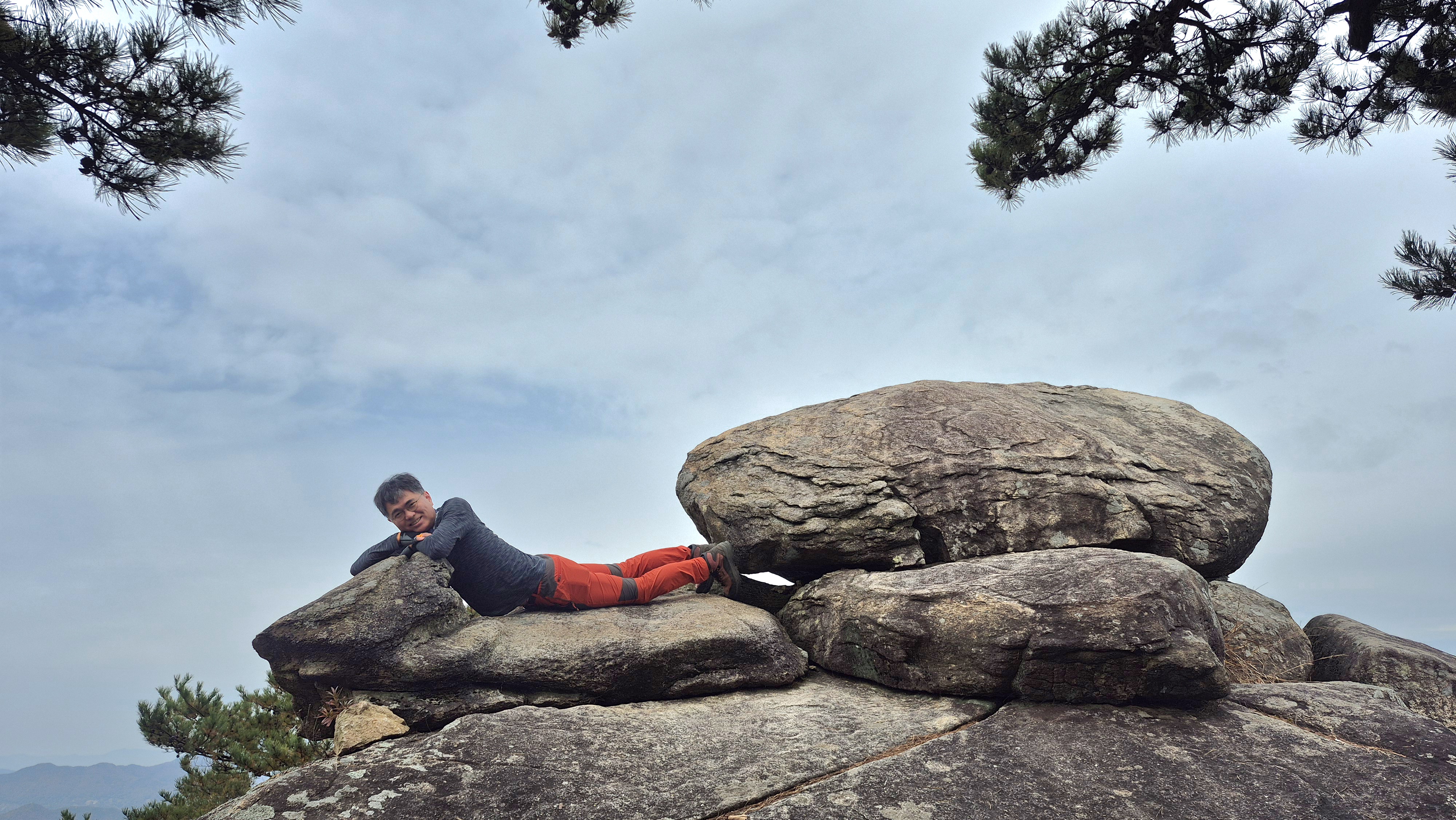 전망대를 지나면 곧이어 나타나는 능선길이다. 어렵지 않게 만나게 된다. 제일 먼저 데크로 잘 관리되고 있는 거북바위는 포토존이다. 누구나 거북목에 올라타 포즈를 취한다. 거북바위에 이어 왕관바위를 만나게 되는데 딱히 왕관모양으로 느껴지지 않는다. 올라가서 포즈를 잡을 만한 위치를 찾기 힘들어 패스한다. 오르막다운 오르막의 경험 없이 장령정이라는 정자와 만난다. 1층과 2층에 휴게공간이 있어 산객들이 쉬어가기 좋게 만들어져 있다. 하산길에 이곳에서 식사를 하기로 하고 계속해서 산행을 이어 나간다.