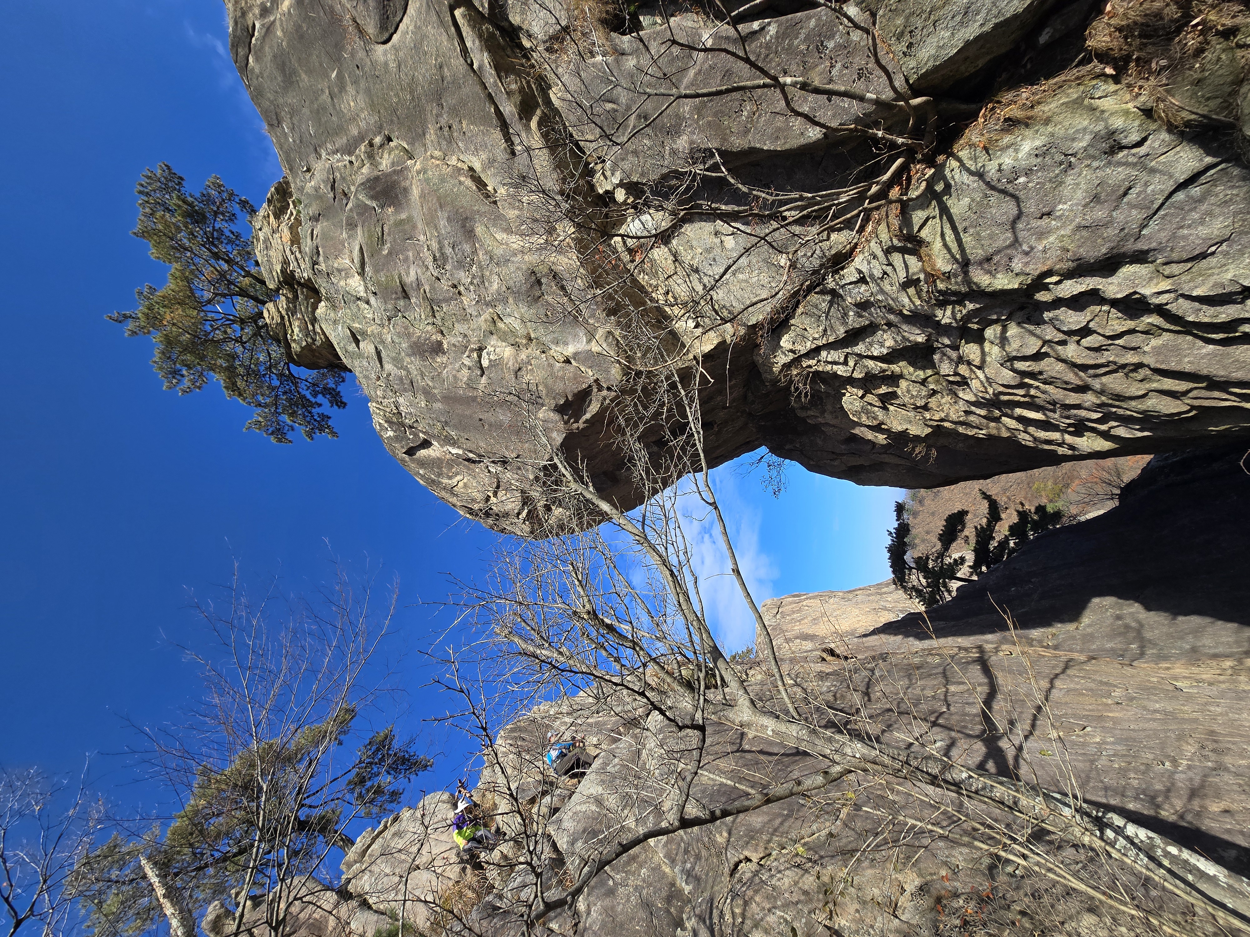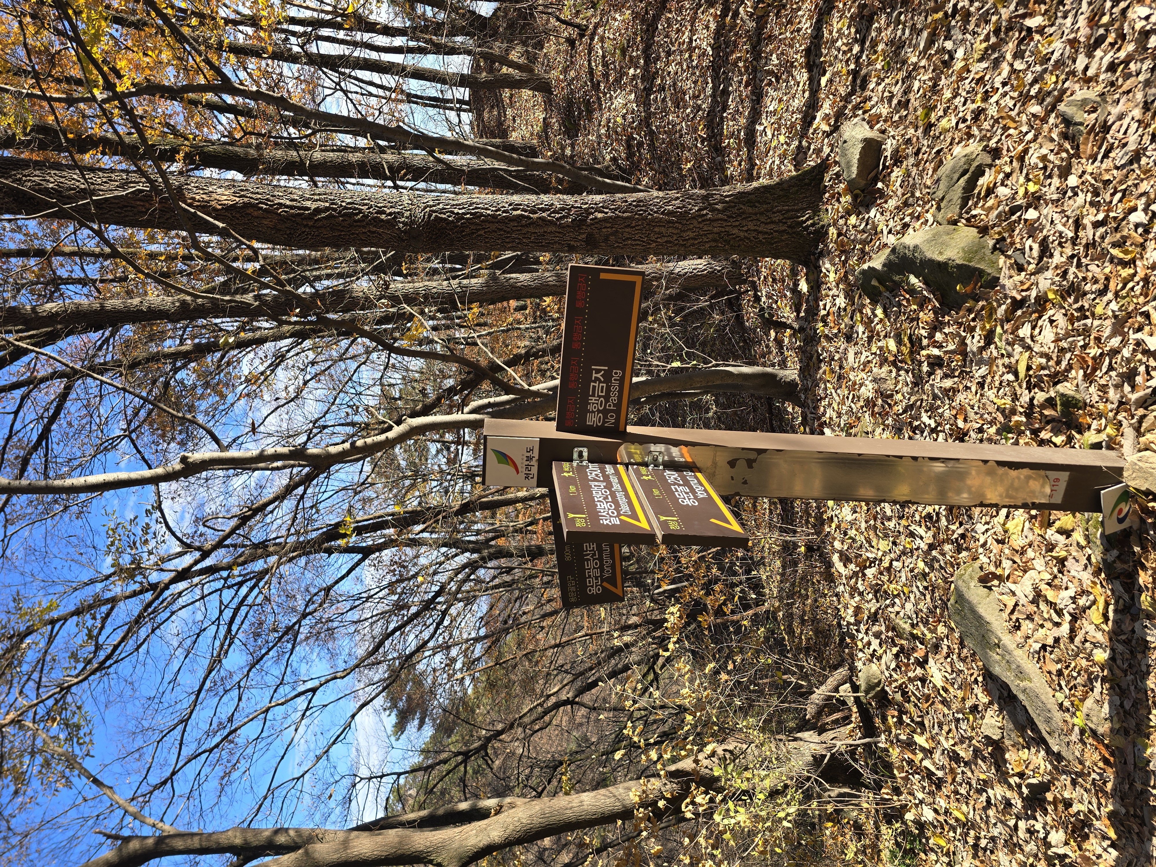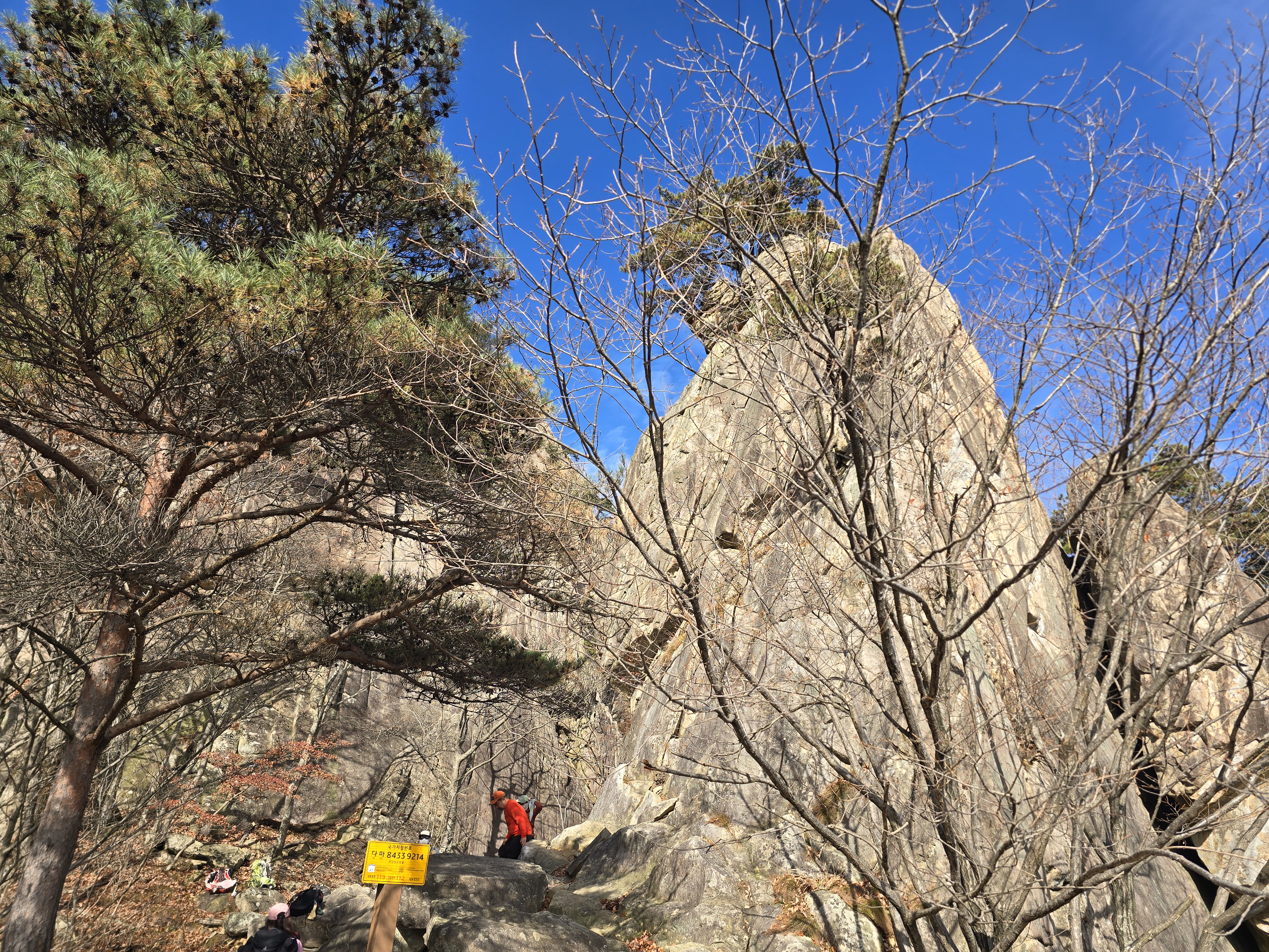 용문골 삼거리를 따라 하산을 진행한다. 이 코스도 너덜길이라 걷는 게 만만치는 않다. 천천히 조심하며 내려오다가 용문굴 표지판을 만난다. 용문굴에 들어가서 암벽을 즐겨본다. 다소 위험하긴 하지만 스릴 있는 암릉릿지는 또 다른 행복이다. 한참을 너덜길에 고생하며 내려오다 보면, 편한 오솔길이 나온다. 날머리인 용문골 등산로 입구와 가까워졌다는 의미라 할 수 있다. 지난 6월 친구들과 자가용으로 왔을 때는 용문골 등산로 입구에서 주차장까지 도로를 따라 걸어가는 수고를 했는데, 산악회 버스는 입구에 와서 대기하고 있다. 산행 시작할 때의 좋지 않았던 컨디션이 산행 끝날 때는 베스트 컨디션으로 돌아와 있다. 역시 산은 내게 치유의 이름이다. 행복한 이틀 연산은 무사한 기억으로 자리 잡으며 끝이 난다.