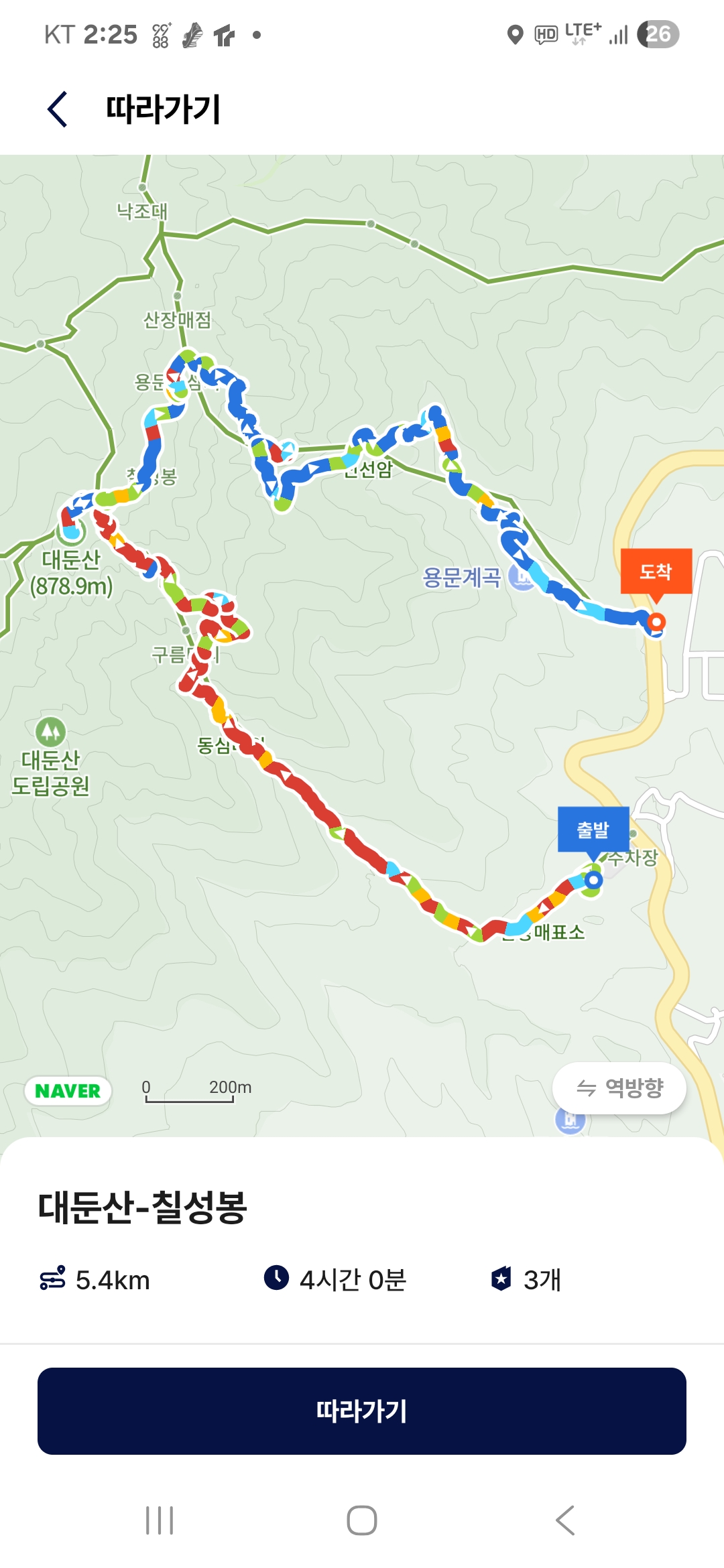산행코스(5.4km, 산행시간 4시간, 소모열량 748kcal)