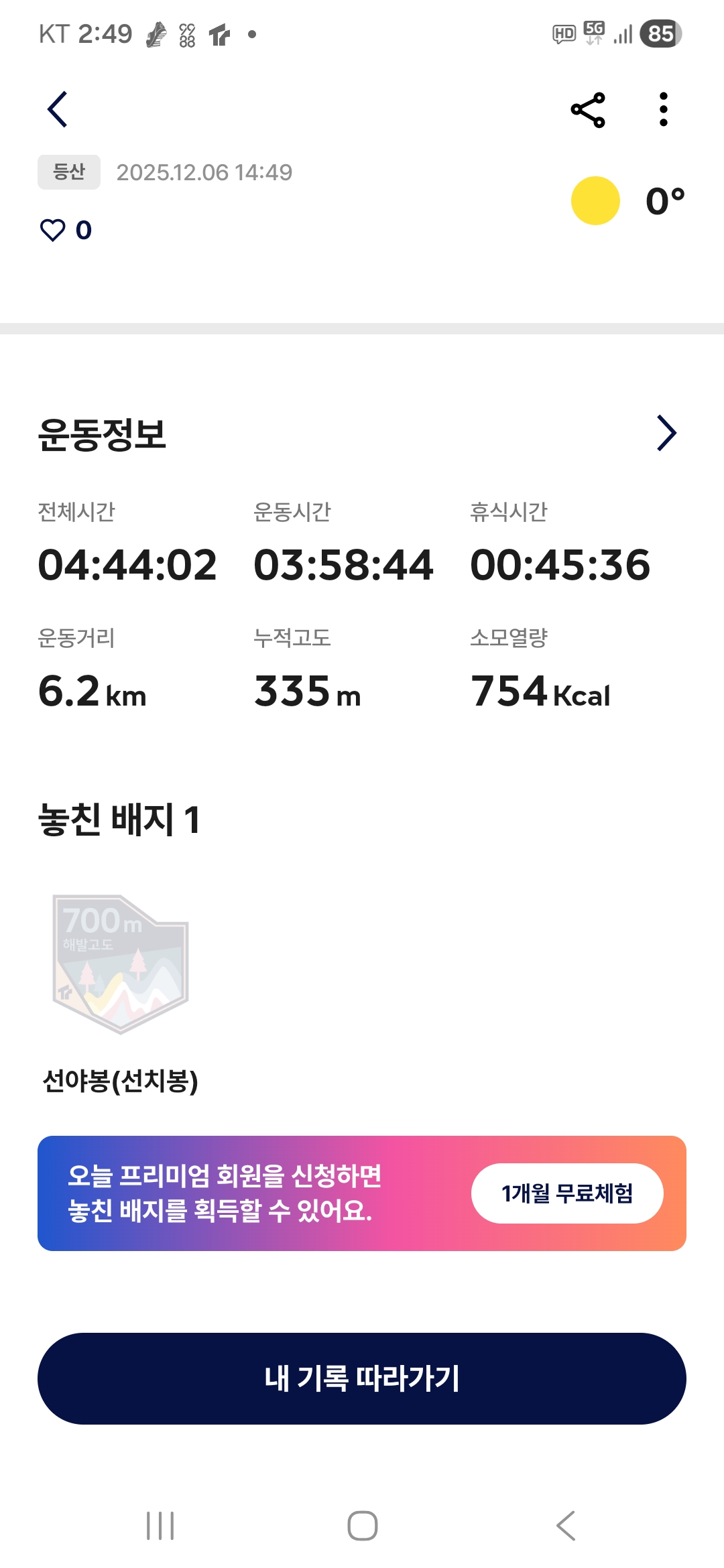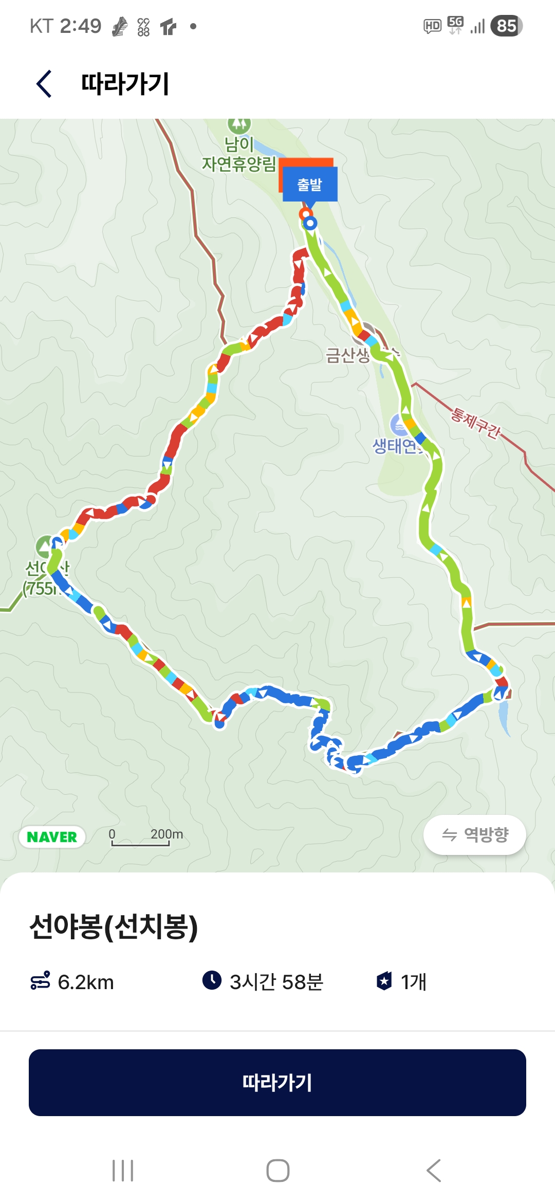 산행코스(6.2km, 산행시간 3시간 58분, 소모열량 754kcal)